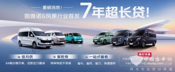 2025年5月,图雅诺轻客针对9座及以下明窗车型,正式开通6年、7年超长周期产品,贴息与非贴息产品期限清晰明了,还专业受理宿营车、房车业务,满足用户多元需求。