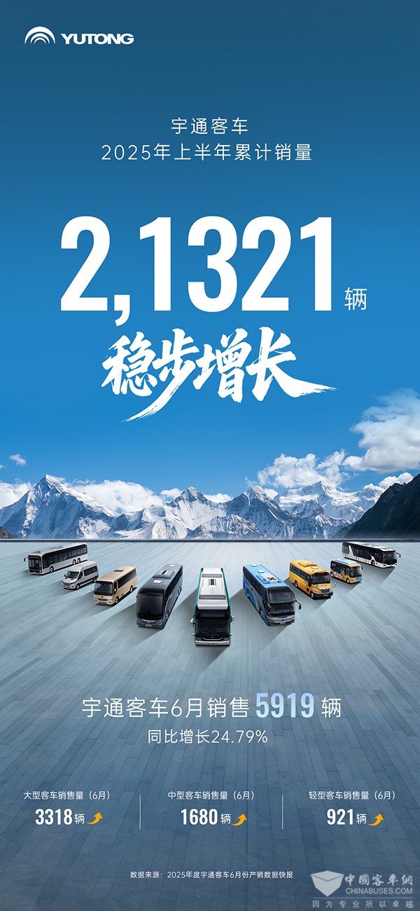 21321辆!宇通客车上半年销量创阶段性新高。其中6月销售5919辆,同比增长24.79%。
