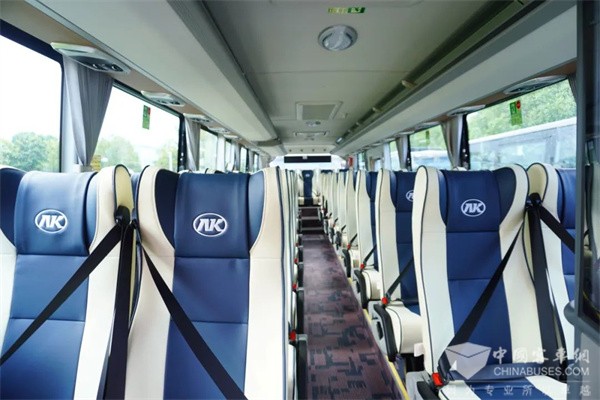 为保障高铁接驳安全无忧,车辆采用轿车化仪表台与全液晶仪表盘设计,信息清晰直观,操控便捷流畅,极大提升驾驶员的舒适度与专注力。同时,安凯N11E充分考虑乘客需求,拥有5.5m³的贯通式行李舱,并贴心增设大容量行李架,有效解决了游客行李存放难题。
