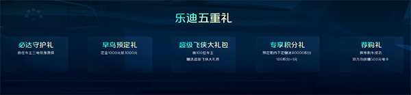 福田卡文乐迪售价9.98万元起,可根据需要选择智能化配置,首批下定用户将享受五重大礼:必达守护礼,首任车主三电终身质保;早鸟预订礼,定金1000元抵3000元;超级飞侠大礼包,前100位车主,赠送超级飞侠大礼包;专享积分礼,预订期内下订赠送80000积分;荐购礼,推荐购车成功,双方均获赠500元电卡。