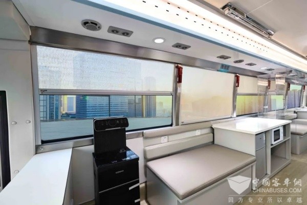 在车内功能区,每一个环节的设计都彰显着山东重工中通客车对献血者以及医护人员体验的关怀。智能登记区、高效体检区、舒适采血区、多功能休息区等区域科学布局,使得献血流程更加顺畅高效,单次采血服务效率可提升30%以上。