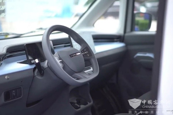 祥菱U7搭载了福田自主研发的爱易科半固态电池,百公里电耗13.7kWh,50.23kWh产品极限续航可达360km,轻松满足用户从城际物流到城市配送“最后一公里”的运输需求。同时采用六合一高集成电机,最高效率可达95%,峰值功率可达100kw、峰值扭矩225nm,轮边扭矩2750N·m,动力强劲,轻松应对市区各种路况。