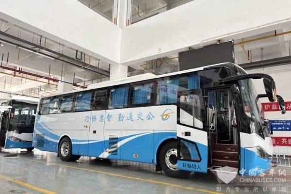 中央直驱动力方案,自研电机+传动轴+驱动桥”,再加上卓越的底盘设计以及多合一控制总成、轻量化车身等,动力强劲,输出平顺,安全可靠,300公里续航里程,充分满足定制通勤线路的全天运营需求。