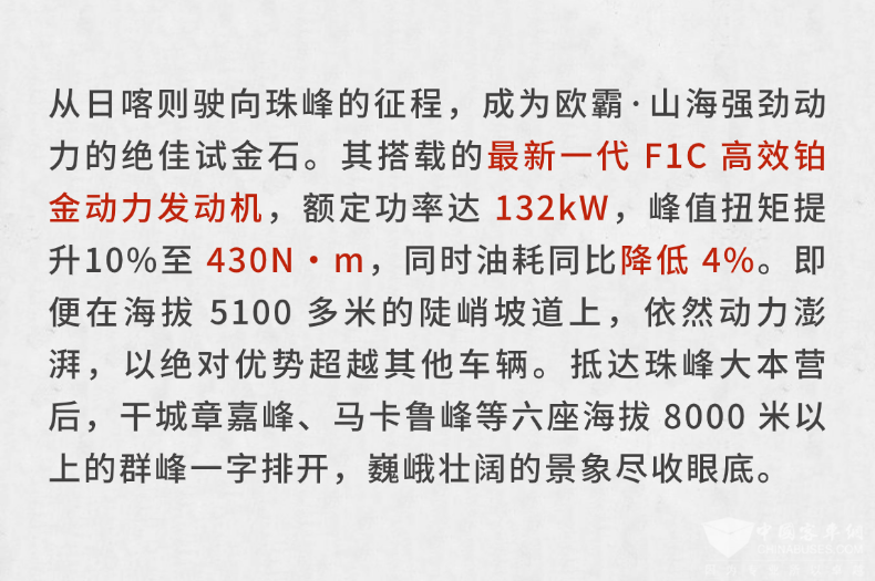 欧霸·雷霆在拉萨旅途中表现优秀,4800米高海拔地区跑出百公里10.1L的油耗,全地形轮胎加持,全时四驱系统搭配三把锁。搭载最新一代F1C高效珀金动力发动机,减少油耗,360全景环视系统清晰呈现周边环境。