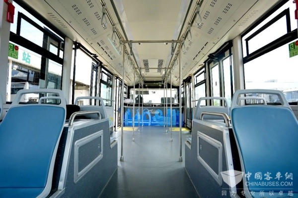 此次发布的中车新能源机场摆渡车,搭载了中车自主迭代开发的180KW大功率双绕组电机,峰值功率达350KW,匹配高安全磷酸铁锂电池,全平低地板、电动塞拉门、分区独立空调等设计;“鸟笼结构”全承载车身设计,让整车重量更轻、强度更高、承载能力更大;配备360度环视系统,整车15路监控系统,对驾驶区、乘客区以及车外四周全域覆盖,满足行车及泊车等不同场景下无死角驾驶视野。