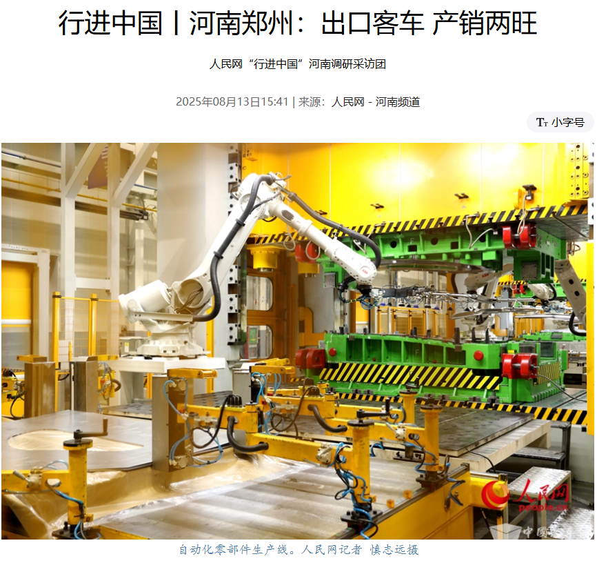 在调研过程中,采访团走进宇通,和宇通自动化工程师马明亮一起走进生产车间,系统展示了宇通在智能制造领域的持续探索与突破。人民网对此进行了详细报道。