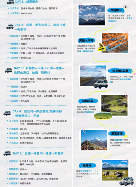 忘掉平坦的柏油路,这次的征途是对驾驶技术、车辆性能和个人意志的三重考验。欧霸·山海将和你一起穿越一系列传说中的地标,每一公里都充满了未知与激情。在翻越折多山垭口、铁匠山垭口时,你将在稀薄的空气中感受心脏与引擎的共鸣;在途经“摄影家天堂”新都桥、壮丽的格底拉姆、神秘的措普沟时,你的双眼将饱览天堂级的美景;在挑战天路十八弯的连续急弯、434网红路的悬崖峭壁,以及遍布全程的非铺装路面、炮弹坑、乱石路、涉水路段和草原穿越时,这将会是一场技术的炼狱。