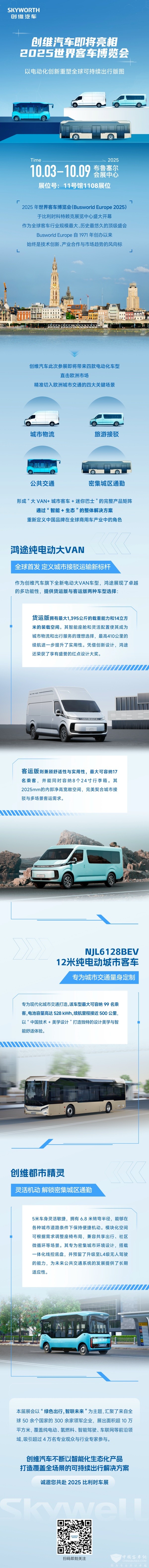 - 直击欧洲市场 创维汽车即将亮相2025世界客车博览会[09-29]