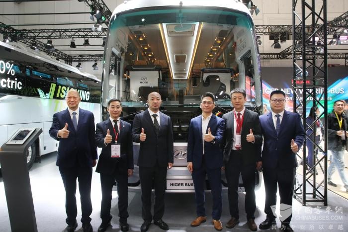 苏州金龙海格客车已连续四届在Busworld国际舞台上为客车全面进入电动化时代发声,从2017年超级电容公交、2019年Azure系列纯电公交、2023年高端子品牌FENCERf1纯电公交,再到2025年发布新V系纯电客车,不仅展示了中国客车一流的研发和制造实力,更标志着中国在新能源客车领域和产品高端化方面的创新引领。