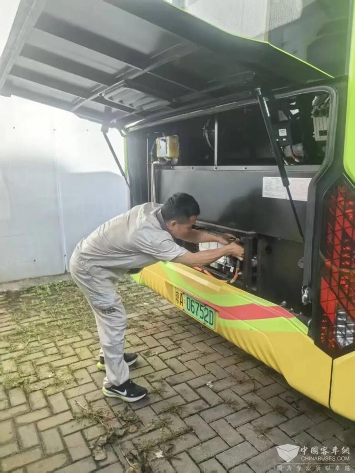 在新穗公交保障一线,邓圣发严格遵循维保流程,对新能源车辆开展全面“体检”——从电池性能到电机运转,从车身外观到车内设备,不放过任何细节,确保每辆车以最佳状态投入运营。