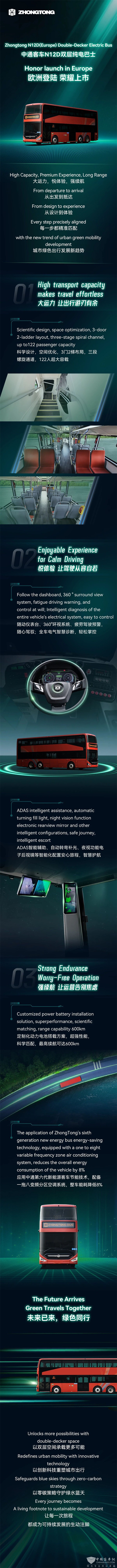 一图读懂中通N12D丨比利时客车展欧洲首发双层纯电巴士解决方案