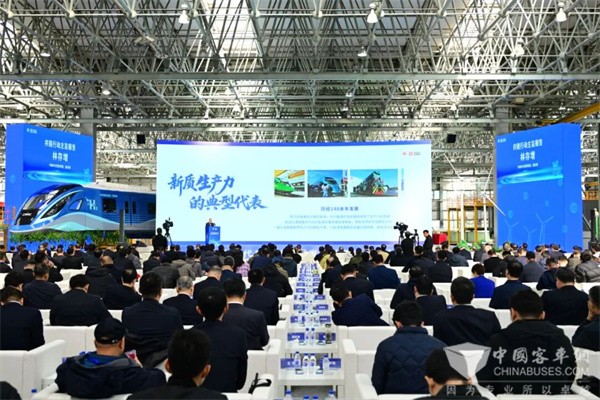 参会主要领导及嘉宾参观了中国中车现代产业链融通发展共链行动主题展。其中,中车氢燃料电池客车的首次亮相即备受关注。该车型搭载行业领先的“氢燃料+锂电池”双能源系统,配备6个140L氢气瓶和100kWh高安全电池,通过氢电协同控制,实现了10-15分钟的极速加氢与高达550km的最大续航,轻松满足全天运营需求。它不仅具备卓越的-30℃低温启动能力以应对各种气候,更以全程零碳排放的环保优势和远低于燃油车的使用成本,为城市提供了绿色、经济、可靠的公共交通解决方案。