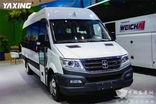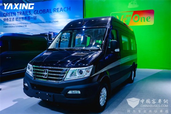 除大中客产品外,亚星客车还推出多元化VAN产品与定制底盘,满足客户本地化组装与个性化改装需求。其中,大VAN产品涵盖 5.9 米和 7.5 米两个长度版本,支持燃油与电动两种动力选择。纯电动商务版VAN拥有高、低电压双平台,电池电量超100kwh,配合高效三合一电驱动系统,可满足 200-300 公里日常运营需求。燃油版VAN则搭载潍柴RA428发动机,最大功率 120kw,最大扭矩 420N・m,提供MT与AT两种变速箱选择,四轮盘式制动设计有效减少热衰退,保障行车安全。