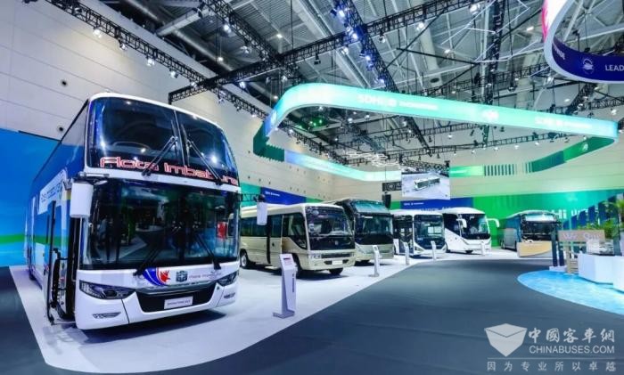 近年来,中通客车以品质为基,以创新为翼,赋能品牌升级,海外市场佳绩频传,全球竞争力稳步提升。活动现场,中通客车旗下11款精品车型一同亮相,覆盖城市公交、旅游客运等细分领域,全面展现中通智造前沿科技及绿色理念,为全球合作伙伴献上一场"精彩大秀"。