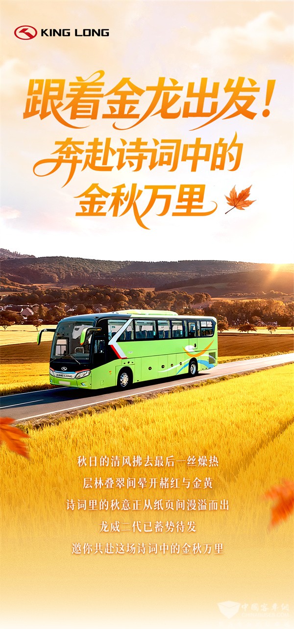 别让诗词中的秋日盛景仅停留在纸页之间,龙威二代将载你驰骋于华夏山河的金秋画卷。此刻,跟着金龙出发,在斑斓铺展的万里山河间,享受与秋天浪漫邂逅的每一段旅程!