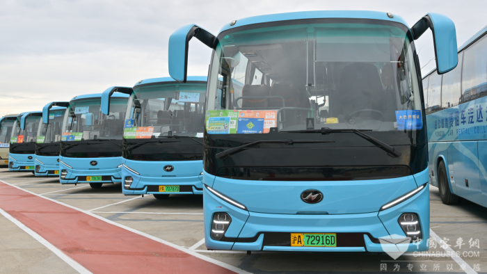 据苏州金龙驻外服务工程师王维全介绍,本届进博会期间,苏州金龙携手上海锦勤、锦江商旅、上海永达等合作伙伴,投入超200台车辆服务各国交易团成员及参会嘉宾,其中新V系客车超过60台。“新V系车型去年就以高品质、零故障的表现完成了进博会的接驳任务,今年这款车型还全程参与了进博会开幕式各省部级领导的服务保障工作。”王维全说。作为苏州金龙2024年推出的车型,新V系凭借大气、时尚的外观成为了本届进博会一道靓丽的风景线。车辆内部空间宽敞,配备了智能座舱、多级态空气净化系统、一键快捷启动除霜人性化细节设计,给各国交易团成员留下了深刻印象。参与本次进博会服务保障的王师傅说,“这个车子开着、坐着都很舒服,而且外观也很好看、很靓,外宾们都很喜欢!”