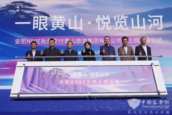 奇峰叠翠,云海漫卷,世界文化与自然双遗产地黄山再添流动新风景。2025年11月14日,“一眼黄山 悦览山河”——安凯N90E批量交付黄山旅游集团有限公司暨上线运营仪式在黄山风景区南大门隆重举行。