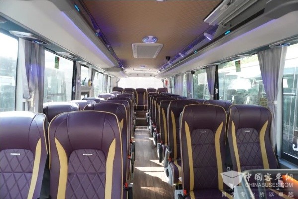 同时,车辆搭载NVH4.0静音科技,相比传统燃油车噪声降低8分贝以上。配合安凯第四代内环境管理系统,采用行业首创的电浆净化技术,仅需15分钟,便可焕新车内空气。整车还采用低重心平地板设计,对易晕车人群更友好,静坐其中,山风轻吟入耳,流云舒卷在望,人、车、自然,和谐共融。