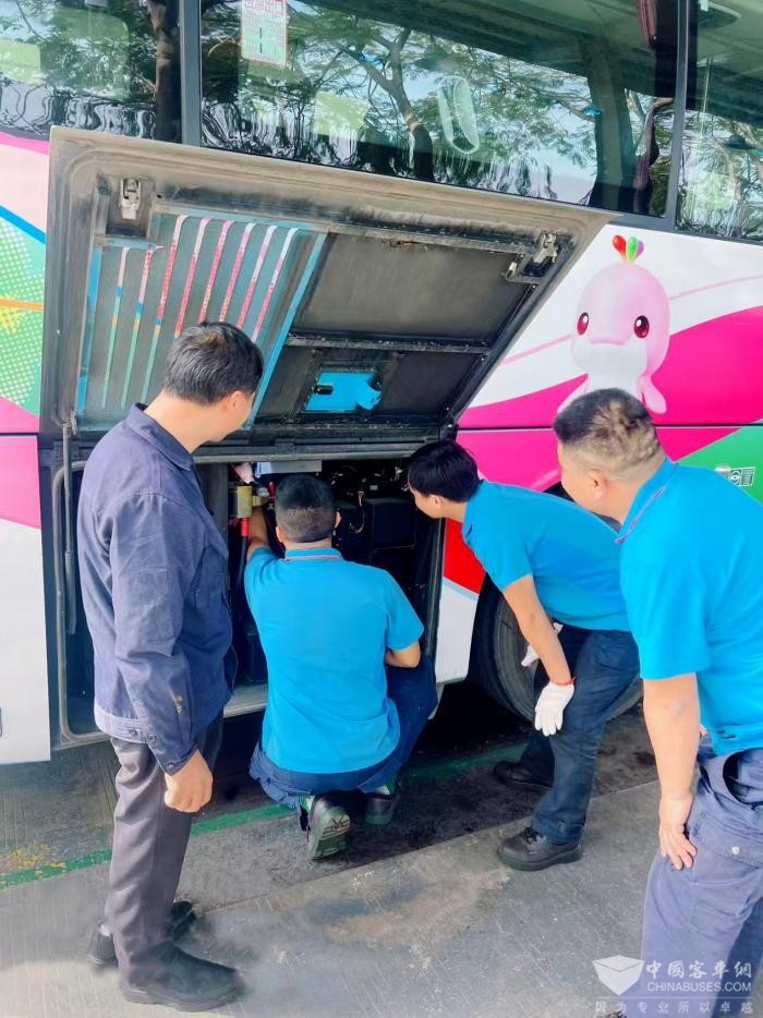 在配件保障方面,对电池管理系统、制动总泵等关键部件实现150%储备量,并开通跨城配送绿色通道,确保应急配件4小时内送达现场。广州狮博中心、深圳新环宇等4大服务站组建的现场团队更实行“日出前到岗、日落后离岗”制度,现场保障人员分组分区值守,所有成员保持24小时通讯畅通。