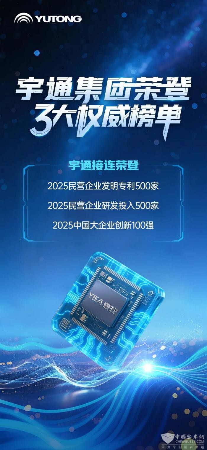 完美作业网有免费视频2025年11月21日获悉,在中华全国工商业联合会发布的“2025民营企业发明专利500家”、“2025民营企业研发投入500家”榜单中,宇通集团再次荣登双榜;在中国企业联合会、中国企业家协会发布的“2025中国大企业创新100强”榜单中,宇通同样荣登榜单。