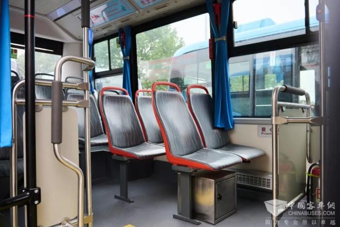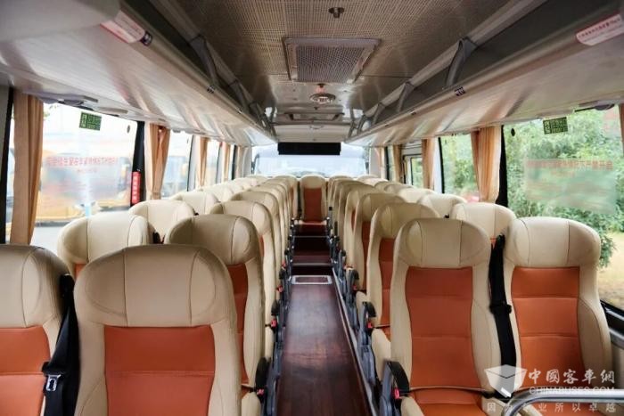 舒适升级,出行有温度:YBL6119GHBEV8、YBL6829GHBEV2、YBL6119H1QE三款车型配备高靠背可调式座椅及USB充电接口,四款车型均标配三点式安全带,踏步铺设石英砂防滑材质,侧窗帘采用防火阻燃面料,连司机区都配备了专属电风扇与遮阳帘,让每一次出行都舒适惬意。