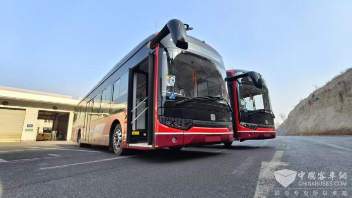 12米车型延续2024款“虎鲸”设计语言,优化海滨波浪灵感造型,新增兔耳式一体化后视镜,防抖性能与整体美观度同步提升;水滴造型转向灯、侧标志灯呼应城市“踏浪前行”意象,动态交互灯语更添科技感。