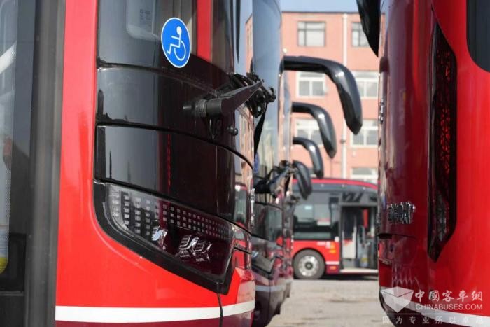 全车座椅升级为带绒布软垫款式,适配大连寒冷气候;2550mm加宽车身搭配优化布局,10米、12米车型载客量分别达80人、90人,后排高度降低且减少车内台阶,低入口与气动塞拉门设计方便老人、孕妇及推婴儿车乘客出行。此外,统一仪表台配置、右侧挡位开关及冷暖双效空调系统,进一步优化驾乘体验。