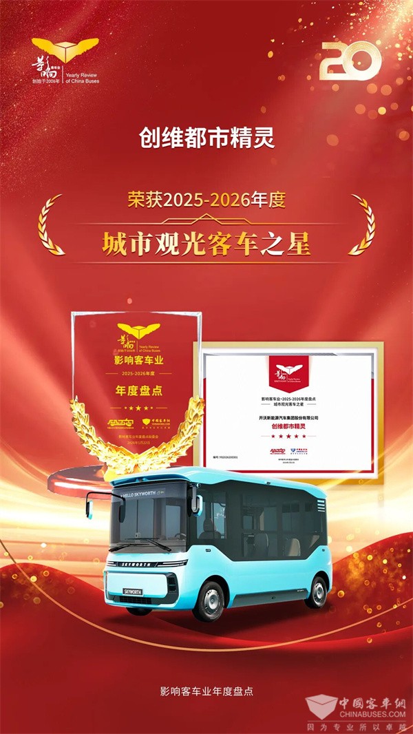 影响客车业年度盘点活动历经二十载沉淀,已成为中国客车行业最具公信力与影响力的年度盛事之一。它旨在盘点年度卓越产品与创新技术,引领行业发展趋势。此次创维都市精灵从众多参评车型中脱颖而出,荣获“城市观光客车之星”,充分彰显了行业专家与市场对其在城市观光细分领域领先地位的一致肯定。