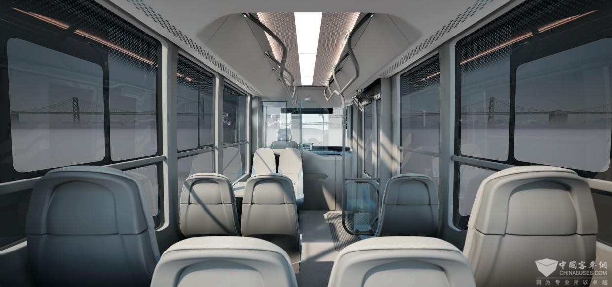 2655mm车身高度+电池底置一体化,重心更低,行驶更稳健,具备不输顶置电池公交的340mm一阶踏步低地板和2150mm车内挑高。四轮四角车身以及67.58%轴长比的加持,让车内空间最大化的同时,得以布置下最多12+1座以及5.1㎡平地板区,同级面积最大,19人载荷不输微巴,可以灵活应对城市通勤峰谷需求,在空间利用率上树立了行业新标杆。