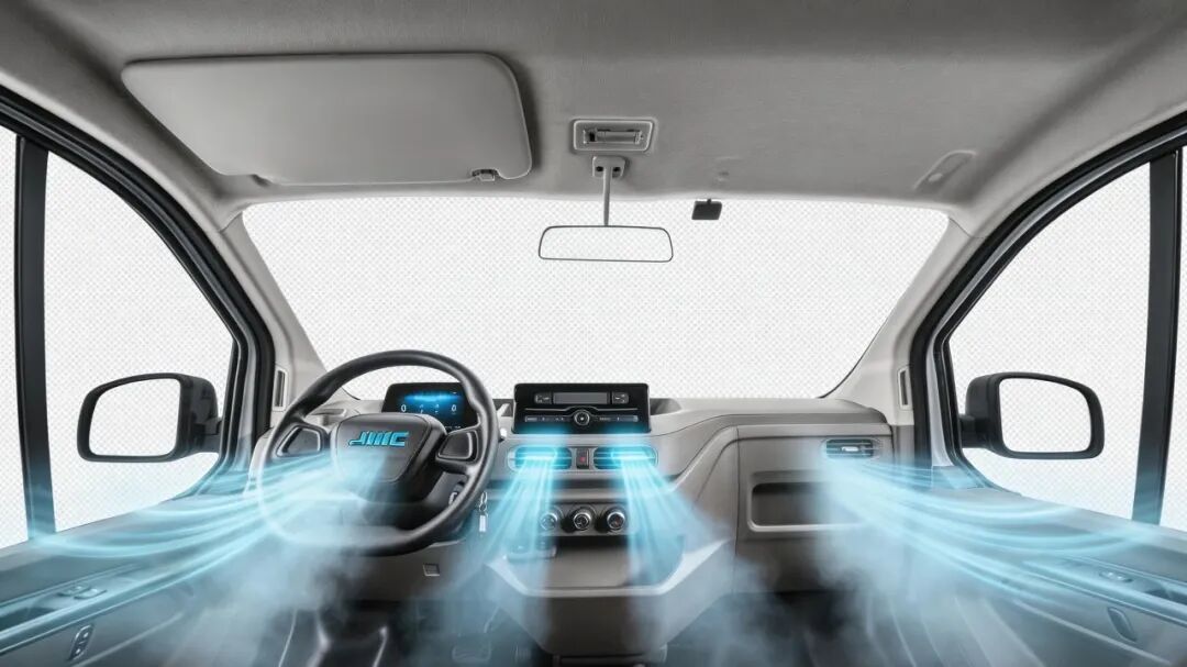 在城配物流中,空调是能耗大户,也是用户不敢开的痛点。江铃E福顺通过搭载智能一体式热管理系统,以高度集成化设计与智能控制策略解决了这一难题。