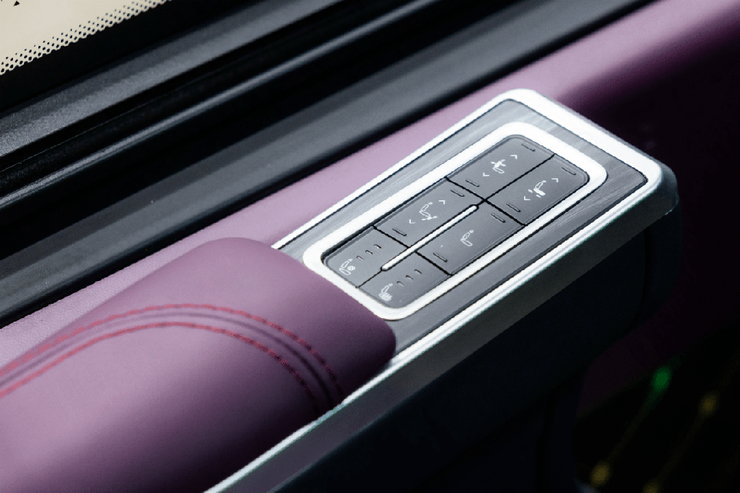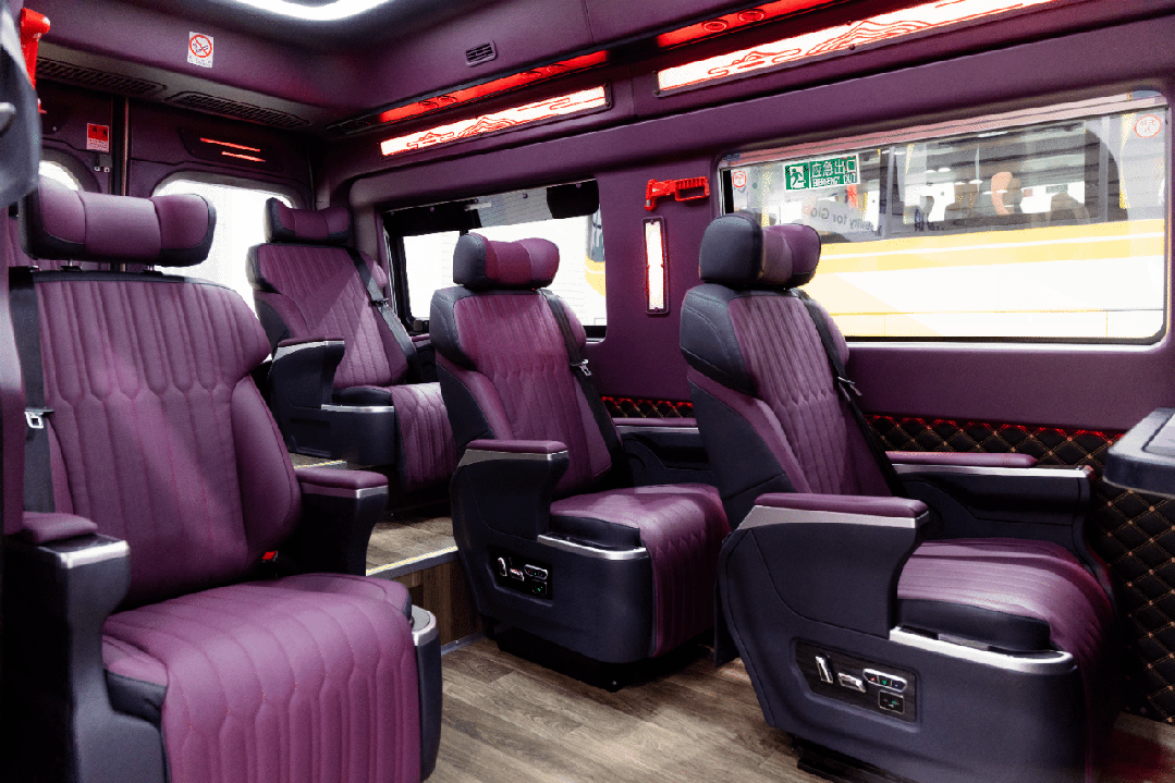车内空间更是将西域旅途的奢适感拉满。高顶车身带来超1.9米的车内净高,半隔断式设计兼顾私密性与观景视野,通透侧窗将天山雪峰、草原花海尽数框入眼中;紫黑双拼电动商务座椅自带通风、加热、按摩功能,搭配星空顶与全域氛围灯,让奔赴风景的每一段路,本身就成了风景。