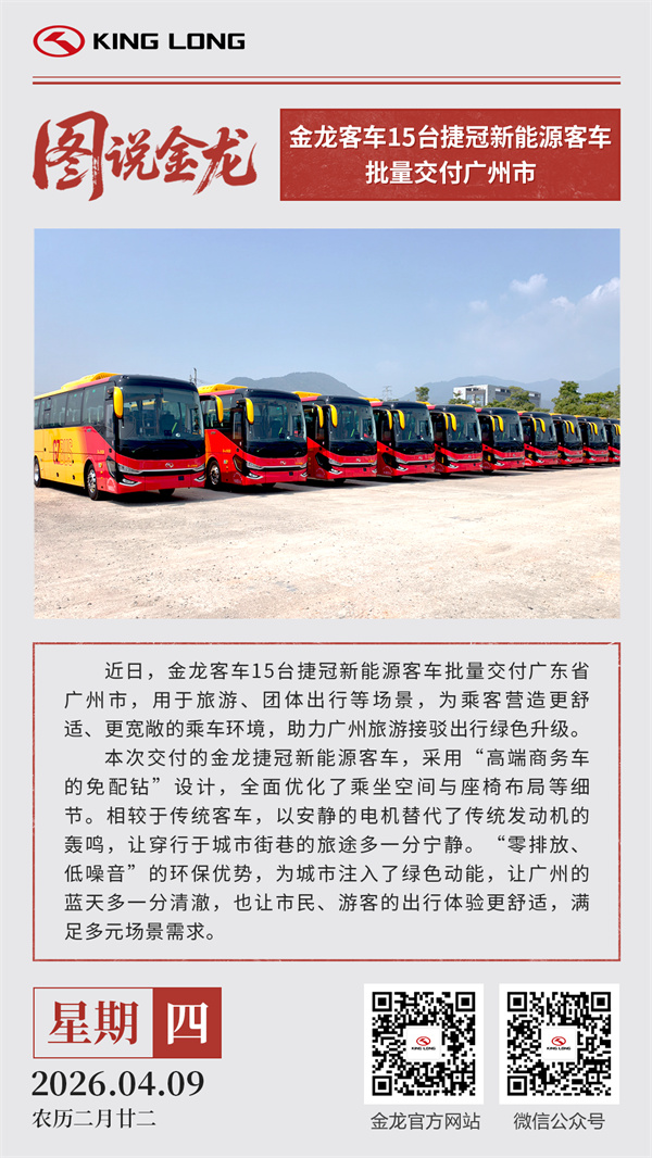图说金龙|金龙客车15台捷冠新能源客车批量交付广东省广州市