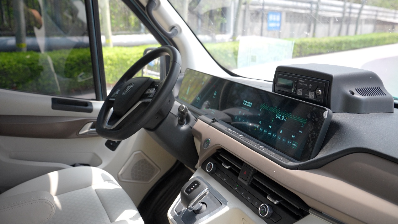 宽境空间,化解乘载焦虑。图雅诺X8专为多人团队出行量身打造7-17座独立座椅设计,本次接待使用的15座车型座椅间距及腿部空间均满足乘坐需要,即便长时间乘坐也毫无局促感。独立行李区空间足以容纳多人行李,搭配仪表台带盖储物盒等13处超大收纳空间,让各类物品各得其所。无论是国际宾客的随行行李,还是媒体团队的拍摄器材,都能轻松安置,尽显从容。