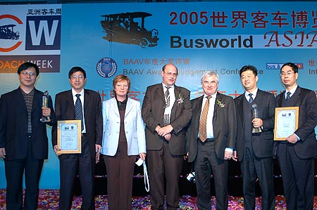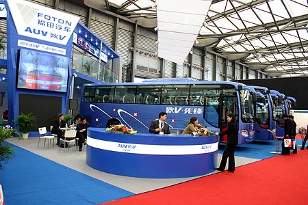 福田汽车首次作为客车企业参加目前世界客车最高水平的博览会,即获得两项大奖,着实出乎意料。众所周知,福田汽车以生产全系列卡车闻名于全国,在国内长期以来处于行业第五的领先位置。2003年9月16日,福田汽车通过资产重组,共投资1.6亿元成立欧V客车事业部。2004年11月30日,福田汽车第100万辆汽车欧V客车下线,距今仅4个月。本次作为大中型客车首次参展,便获得令人艳羡的夺目大奖,欧V客车竞争实力初见端倪,细想起来,又在情理之中。
