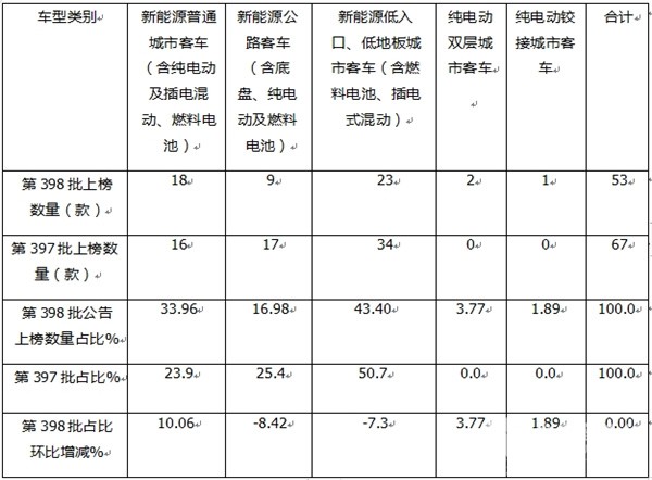 - 第398批新能源客车:上榜53款!低地板(低入口)领跑、普通城市公交领涨