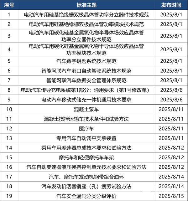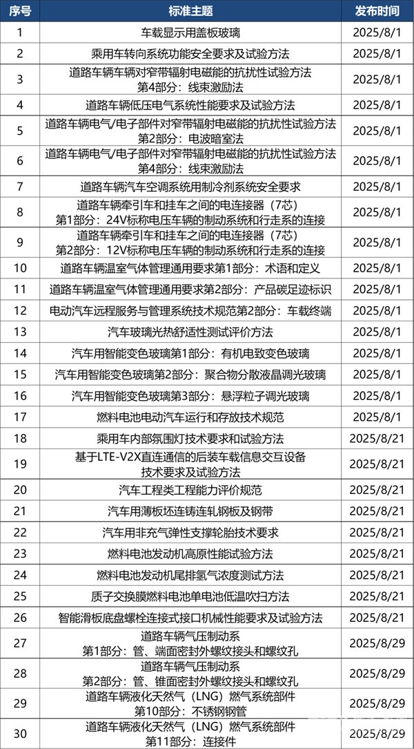 对此,笔者根据慧眼看车等对2025年8月相关汽车行业标准法规汇总进行归纳汇总,并进行了扼要分析,供行业参考!