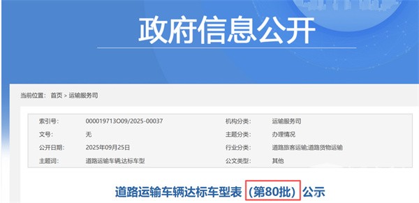 截图1,交通部道路运输车辆达标车型表(第80批公示):