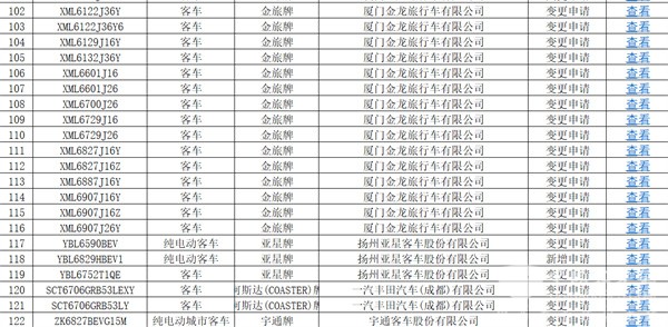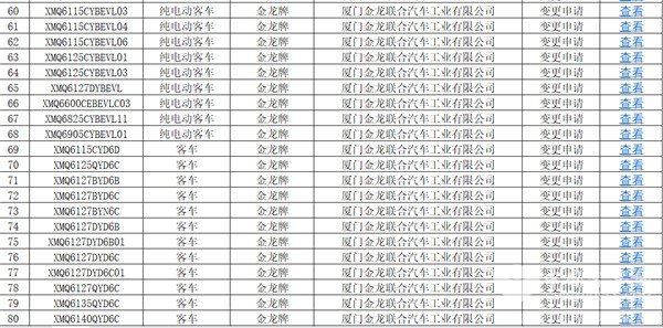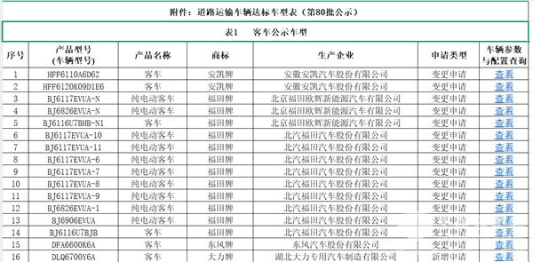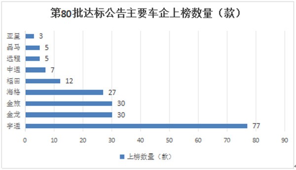 上图可见,在交通部第80批上榜的达标的道路运输客车车型公告中: