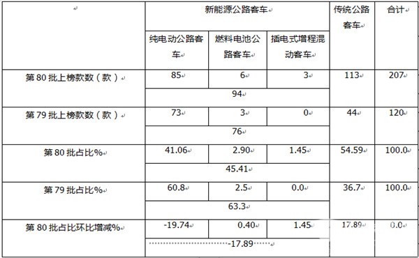 表1,第80批交通部达标车型公告上榜的各动力车型数量、占比与上一批环比(数据来源:交通部)