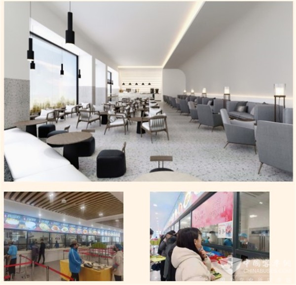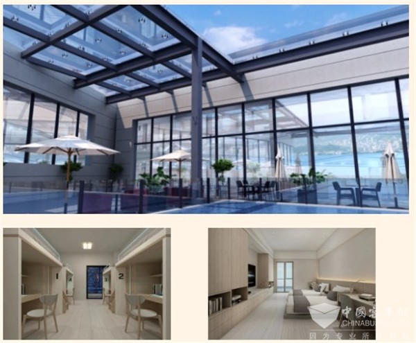 在超级工厂里,人在景中,四季如画,北欧风的员工宿舍,简约而不简单。能容纳3000人的美食城,空中花园,超大型透明咖啡厅,大型健身房、足球场、游泳馆……