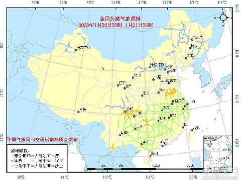 20日20时至21日20时,新疆北部、川西高原北部、内蒙古中东部、黑龙江西部和东南部、吉林东部等地有小到中雪或阵雪;西南地区东部、江汉大部、江淮、江南以及华南西部和北部等地有小到中雨。四川盆地、云南南部、湖南西北部、江南东部等地的局部地区有雾。