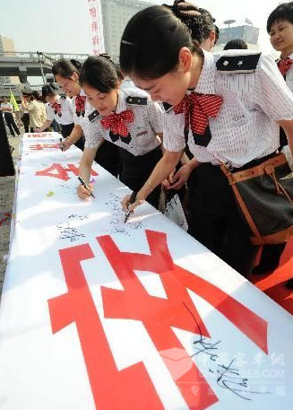 2009年6月15日,南京长途客运职工进行承诺签名。