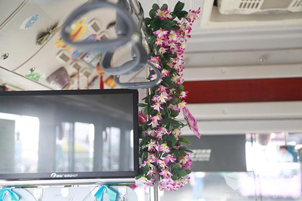 郑州公交爱心车厢 车内装饰鲜花为考生减压