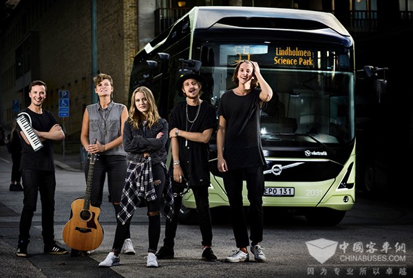 瑞典歌手莎拉·拉尔森 推广沃尔沃纯电动巴士