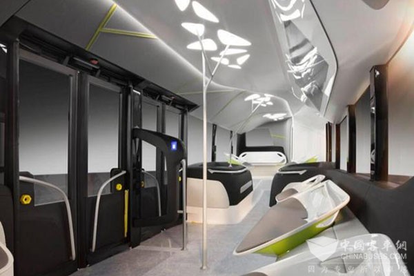 明克说:“未来巴士的内部设计在乘客分区方面提出了很多创意,这方面的设计已经几十年没有发生变化了。这种内部设计的目的是让乘客车厢更加舒适,弱化严格分区的概念。它既提供了开放的空间,也提供了舒适的小空间和获取信息的区域。”