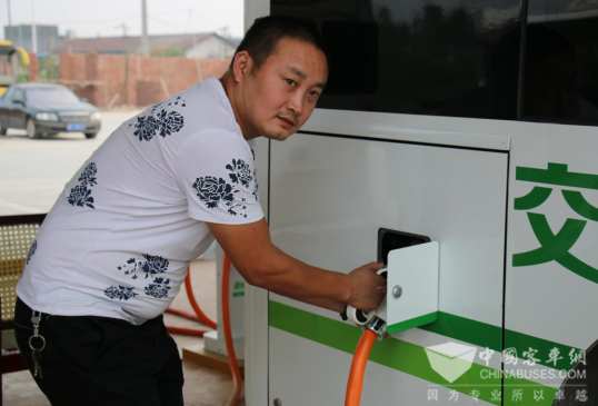 一位司机师傅正在为车辆补电