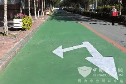 “挺好看的,路口的地方写着公交专用道,一目了然,以后私家车就不能上来跟公交车抢道了。”附近居民张先生称,他也是刚刚发现这条被涂了色的道,“美化了城市嘛,还方便交通,绿色通道,公交优先呗。”