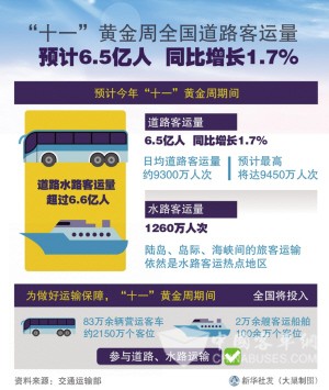 2016“十一”黄金周全国道路客运量将达6.5亿人