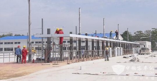 建成后,这里将来可供80到90部中运量公交车停靠和充电。蓝色顶篷的建筑就是中运量公交的维保车间。这栋白色建筑则将用于车辆的清洁除尘。据施工方介绍,根据目前进度,年底前主体外部施工将基本完成,随后将进入后场调试阶段,以确保2017年初中运量公交项目按计划进入试运行。