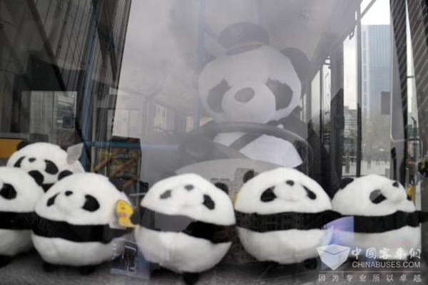 2016年11月24日,一辆“熊猫巴士”亮相成都春熙路,吸引路人眼球。这辆巴士其实为一辆景区售票车,除了车身,司机也换成了一只大熊猫玩偶。